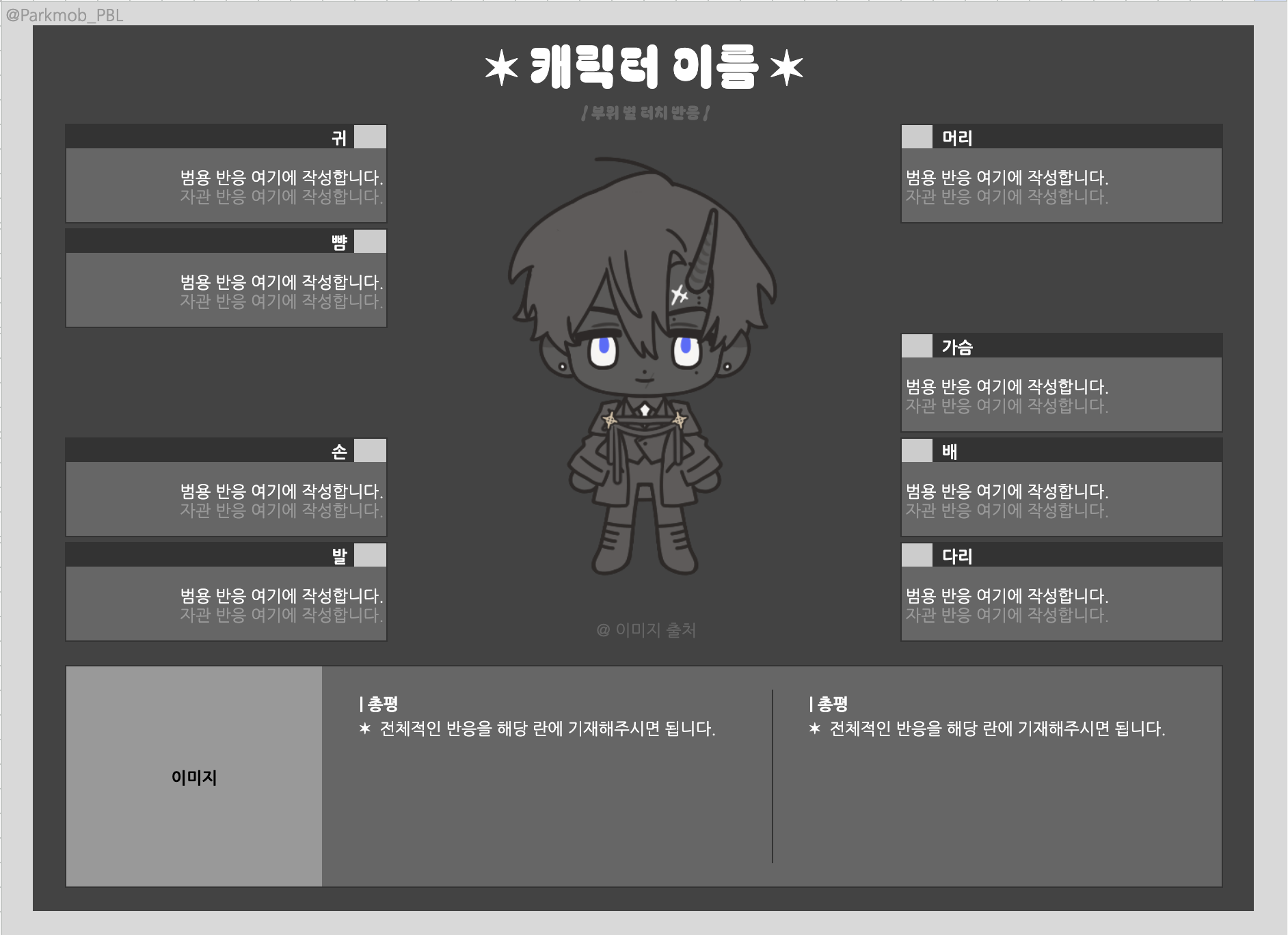 해당 틀은 #자캐의_부위_별_터치_반응 해시태그를 참고해 만들어졌습니다.