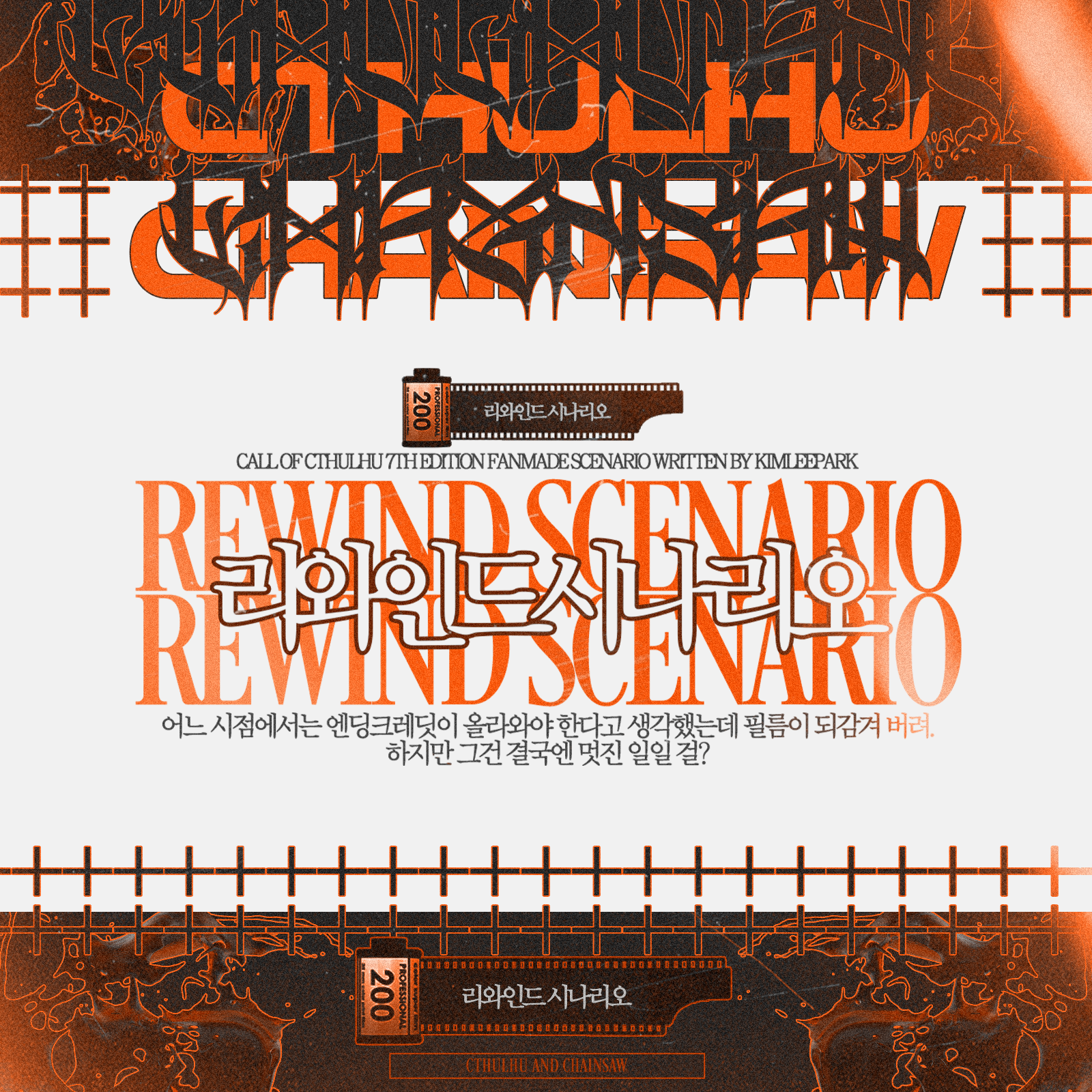 CoC 7판 룰 사용 / 레일로드 권장 인원: 3인 (KPC포함 4인) 플레이 타임: ORPG 3~4시간 난이도: 탐사자- 하 / 수호자 - 중 추천 기능: 매혹, 듣기, 자료조사 개요 영화가 끝나면 필름을 되감아. 그러면 밤
